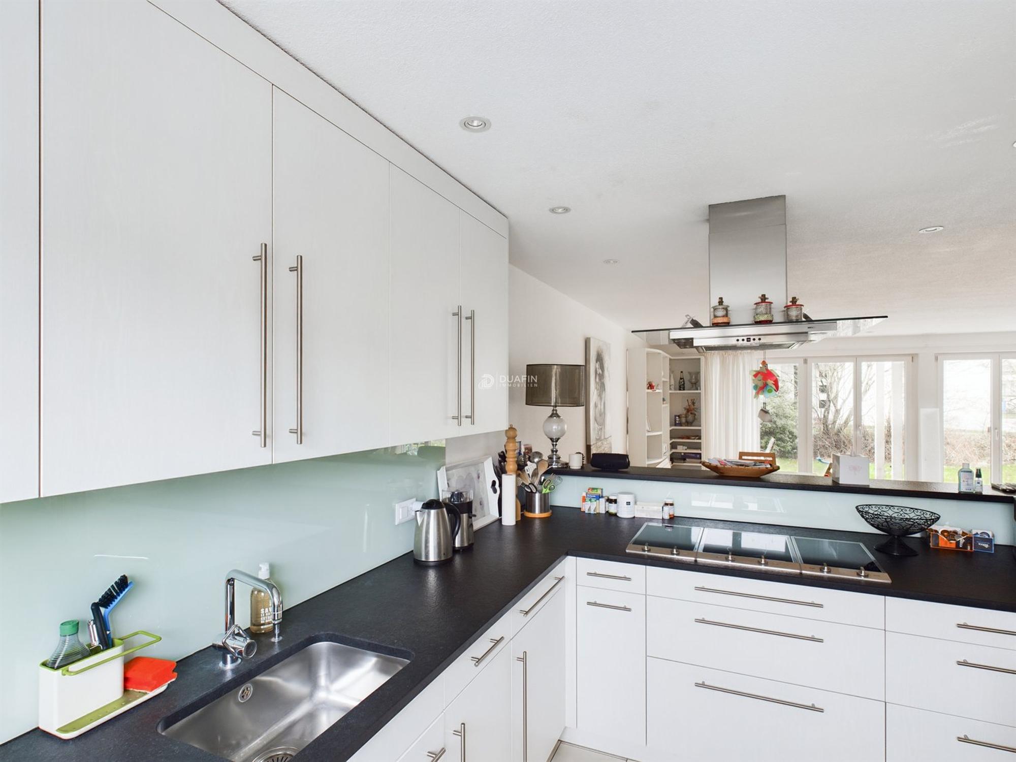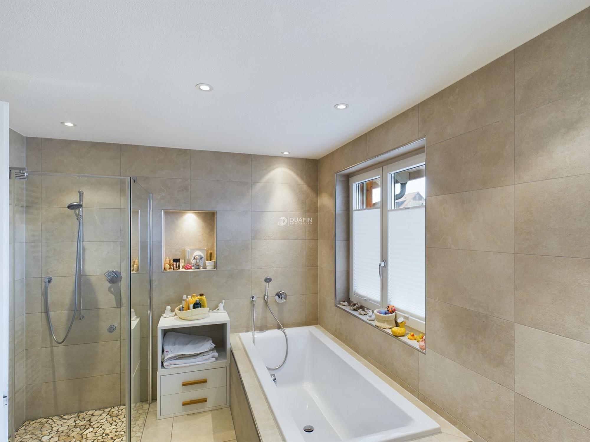 Der lichtdurchflutete Wohn- und Essbereich schafft eine behagliche Wohnatmosphäre. Die moderne Küche ist mit hochwertigen Geräten ausgestattet und bietet viel Stauraum. Die Bodenheizung mit Wärmepumpe sorgt für ein angenehmes Raumklima, während die großzügigen Fenster für eine helle, freundliche Wohnatmosphäre sorgen.