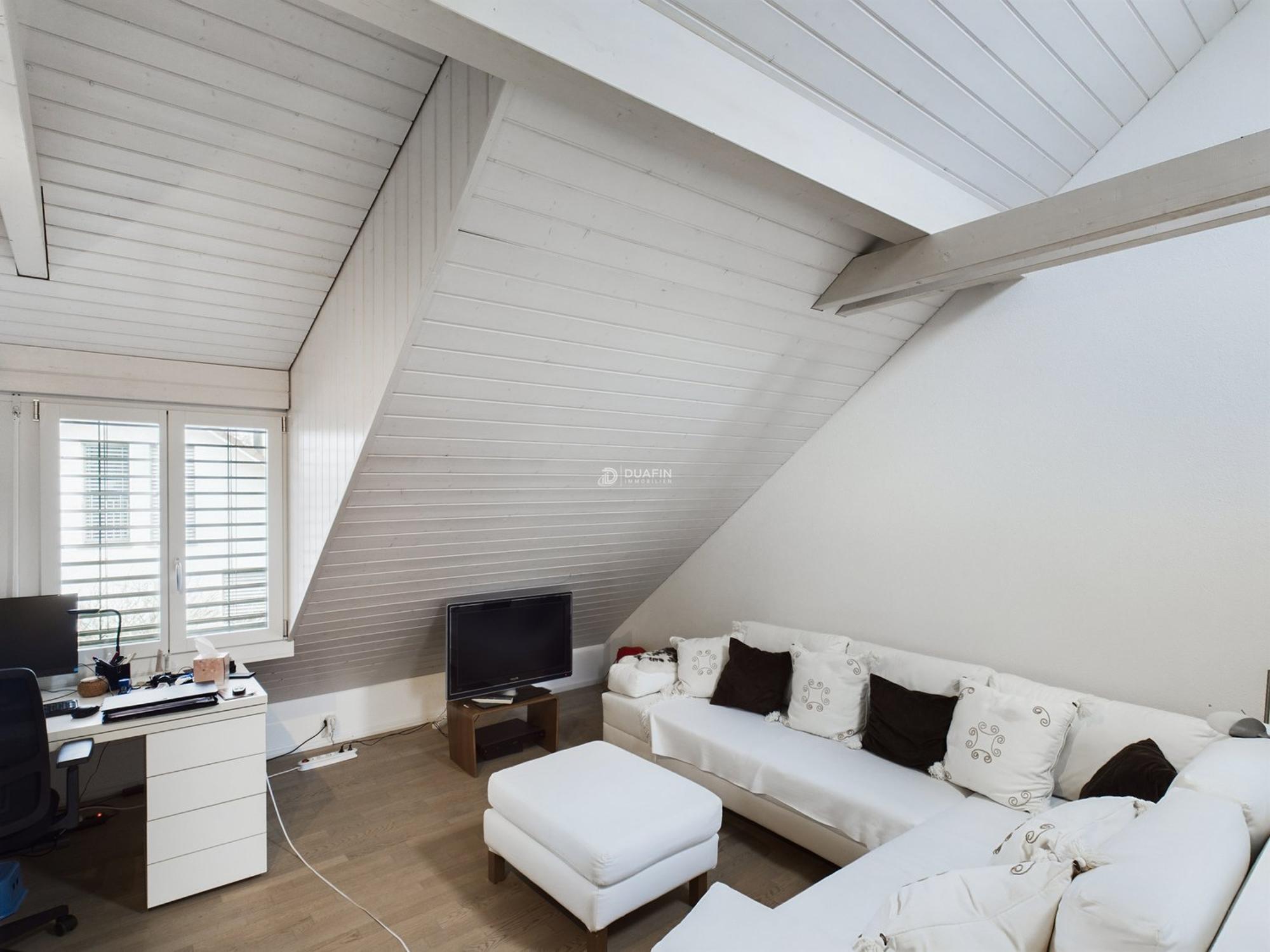 Der Außenbereich bietet neben einem gemütlichen Balkon und einer sonnigen Terrasse auch eine kleine Gartenfläche – perfekt für entspannte Stunden im Freien. Zudem verfügt die Immobilie über einen Keller, zwei Tiefgaragenplätze zu je CHF 30’000.- (im Preis nicht inbegriffen) und ausreichend Stauraum auf allen Etagen.